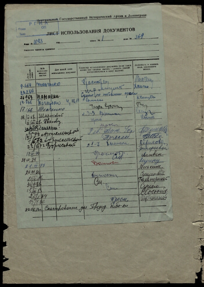 | Шифр хранения | РГИА. 1093 / 1 / 369 |