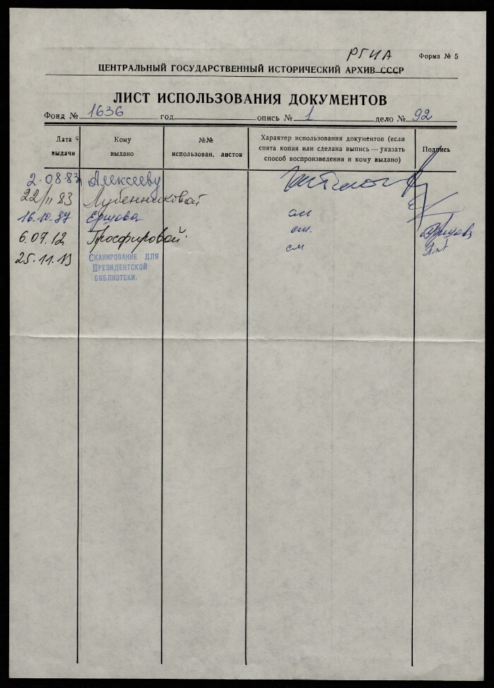 | Шифр хранения | РГИА. 1636 / 1 / 92 |