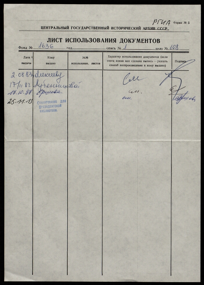 | Организация-создатель записи | РГИА |