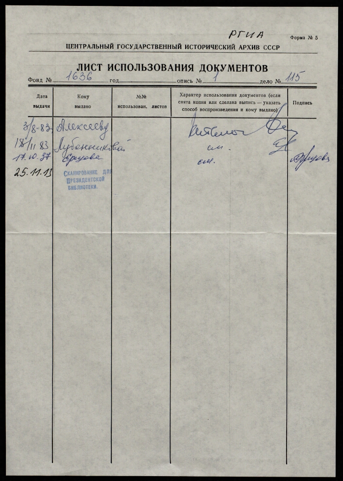 | Шифр хранения | РГИА. 1636 / 1 / 115 |