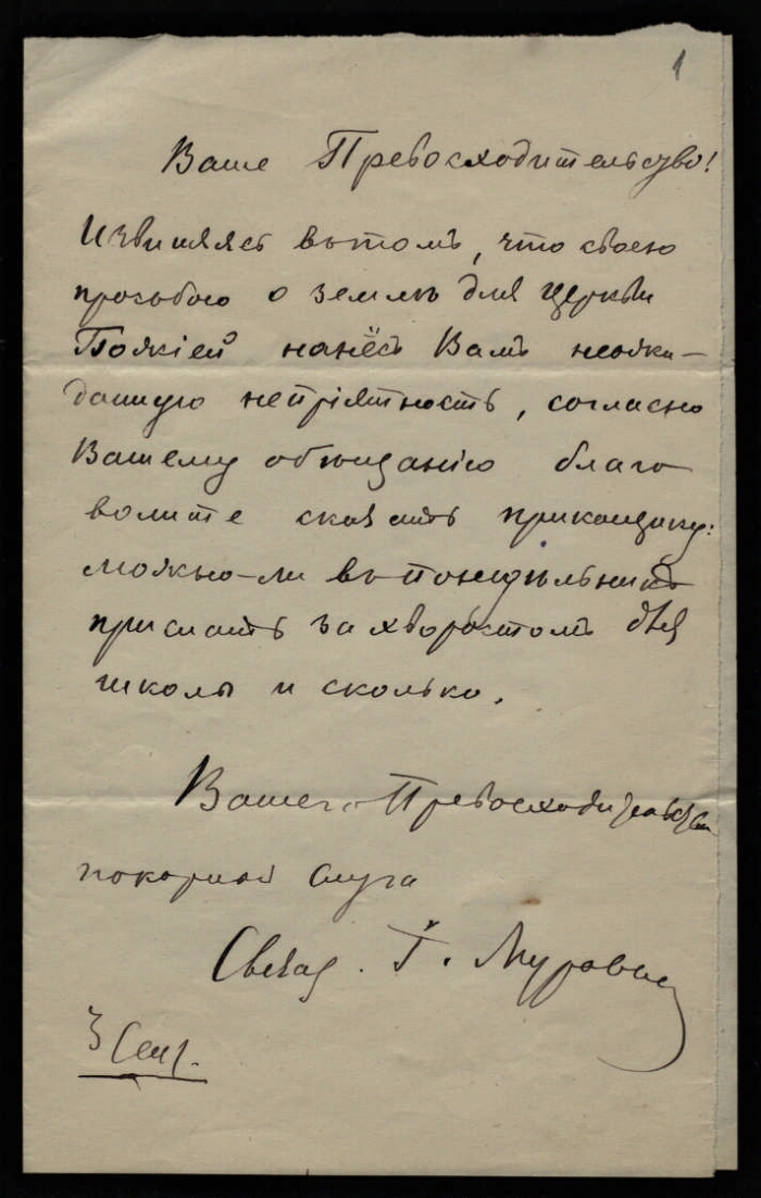 Заголовок дела также: Письма Иоанна Муравьева, священника деревни Крюково Звенигородского уезда Московской губернии, Д. И. Иловайскому с благодарностью за пожертвование на ремонт церкви и строительство сараев; по вопросу о спорном участке земли и с просьбой о переносе ограды между церковным наделом и земельными угодьями имения Спасское Д. И. Иловайского