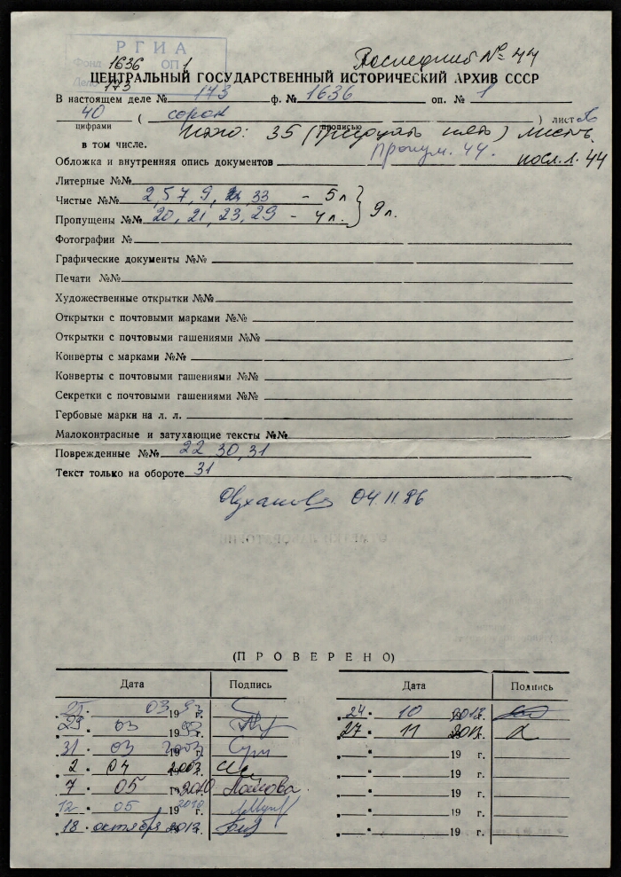 | Организация-создатель записи | РГИА |
