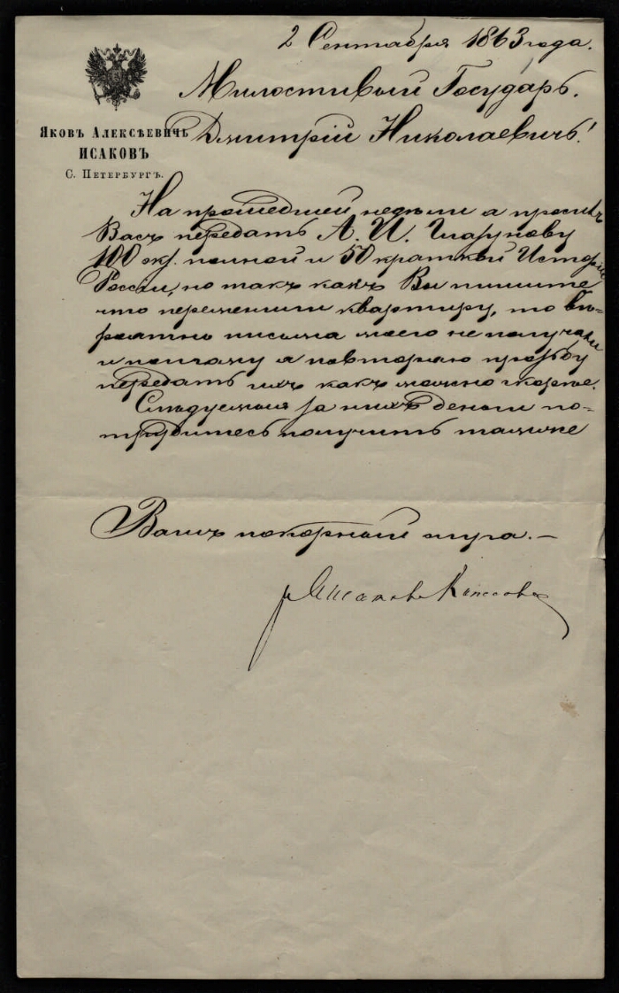 | Аннотация | Письма: Алексеева Б. с препровождением описаний имений в Тульской губернии, предложенных на продажу; Безсонова Петра Алексеевича с препровождением своего портрета и экземпляра своей новой книги; Берга Федора Николаевича с препровождением статьи Д. Я. Самоквасова для "Русского мира", с благодарностью за письмо; Бузескула Владислава Петровича с поздравлением с 50-летним юбилеем научной деятельности Д. И. Иловайского; Бычкова Афанасия Федоровича с благодарностью за присланный экземпляр "Истории России"; [Виброва] о получении двух экземпляров сочинений о происхождении румын и славян; Голощапова Ивана Алексеевича по вопросам подписки и доставки ему газеты "Кремль"; Грицевича Николая Дмитриевича с просьбой выслать наложенным платежом несколько номеров газеты "Кремль"; Дюшена Петра Константиновича по вопросам продажи Д. И. Иловайскому своего имения Спасское Звенигородского уезда Московской губернии; Иловайской Варвары Николаевны о своем самочувствии и здоровье дочери Варвары, с хозяйственным отчетом по дому; Исакова Якова Алексеевича с просьбой прислать 100 экземпляров полной и 50 экземпляров краткой "Истории России", составленных Д. И. Иловайским; Ласкина Павла А. с препровождением 2-х билетов на концерт классической музыки; [Михайлова Павла Дмитриевича] о сборе пожертвований для Московского Славянского благотворительного общества; Полякова А. об оформлении документов и уплате пошлины на покупку Д. И. Иловайским имения Спасское Звенигородского уезда Московской губернии у П. К. Дюшена; Полякова Николая Дмитриевича об условиях продажи Д. И. Иловайскому своего дома в г. Москве (Сретенская часть, I квартал, дом № 52) с землей и выплате залога кредитному обществу; Слепцова Ефрема Васильевича с благодарностью за присланный экземпляр "Истории Рязанского княжества" и с просьбой выслать ему №№ 61, 62 газеты "Кремль"; Филевича Ивана Порфирьевича об условиях приема в Варшавский университет гимназистов и семинаристов; неустановленного лица ("литератора") с критикой материалов о крестьянском землевладении, помещенных в газете "Кремль"; Феоктистова Евгения Михайловича неустановленному лицу с обращением "любезный друг" о докладе его министру народного просвещения о Д. И. Иловайском (в связи с изданием его учебников по русской истории) |