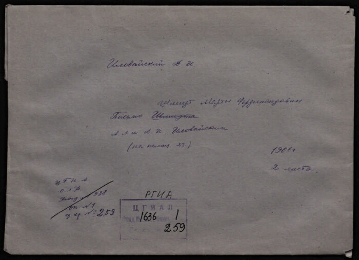 Заголовок Письмо Шмидт Марты Фердинандовны А. А. и Д. И. Иловайским