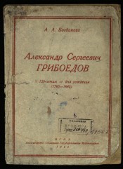 Александр Сергеевич Грибоедов : к 150-летию со дня рождения (1795-1945) / А. А. Богданова. - Новосибирск : Новосибирское областное государственное издательство, 1945. -33 с. : портр. ; 20 см. -