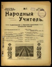 Народный учитель : ежемесячный журнал / под редакцией А. Я. Вигалок, Н. Н. Иорданского, Ф. В. Кипарисова [и др.]. - Москва ; Ленинград, 1924-1935. - Редакторы: 1924-1925, №7/8 А. Я. Вигалок, Н. Н. Иорданский, Ф. В. Кипарисов [и др.] ; 1928-1929, №6 ответственный редактор Ф. В. Кипарисов. Подзаголовки: 1924-1925 №7/8 Ежемесячный журнал ; 1925 №9-1934 Ежемесячный журнал Центрального комитета Союза работников просвещения СССР ; 1935 Общественно-политический, литературно-художественный и научно-педагогический журнал. Орган ЦК профсоюзов работников начальной и средней школы РСФСР, Украинской ССР, Белорусской ССР [и др.]. Издательства: 1924-1930 "Работник просвещения" ; 1931-1935 Учпедгиз. Журнал "Народный учитель" - общественно-политический, литературно-художественный и научно-педагогический журнал, орган ЦК профсоюза работников просвещения СССР, начальной и средней школы. Издавался в Москве с 1924 по 1935 (до 1933 - ежемесячно, а затем 6 номеров в год). Массовый журнал для работников просвещения, в частности для сельского учительства, освещал вопросы педагогики и политико-просветительной работы. В первые годы в состав редакции входили Н. К. Крупская и А. В. Луначарский, педагоги А. Я. Вигалок, Н. И. Иорданский, Ф. В. Кипарисов и др.