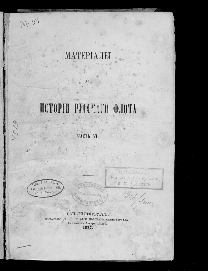 Материалы для истории русского флота. - Санкт-Петербург : в типографии Морского министерства, 1865-1904. -17 т. ; 28 см. - Редакторы: ч. 1-4 - С. И. Елагин ; ч. 5-15 - Ф. Ф. Веселаго ; ч. 16-17 - С. Ф. Огородников.