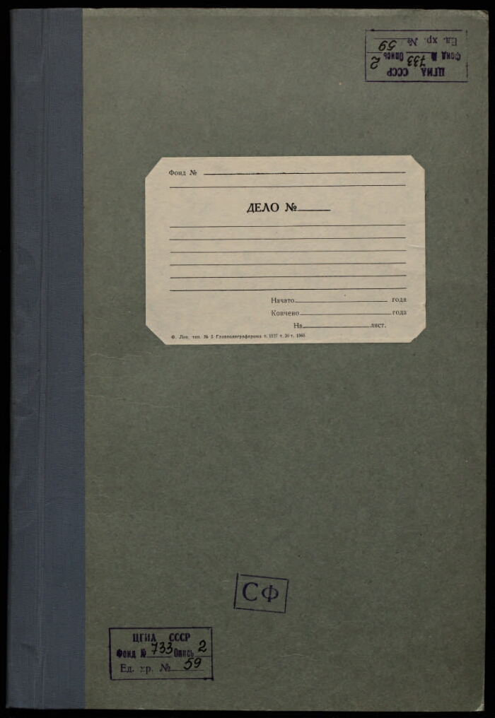 | Шифр хранения | РГИА. 733 / 2 / 59 |