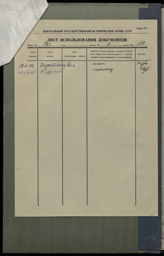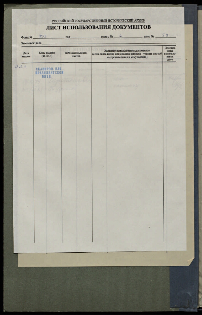 | Фонд | Департамент народного просвещения Министерства народного просвещения |