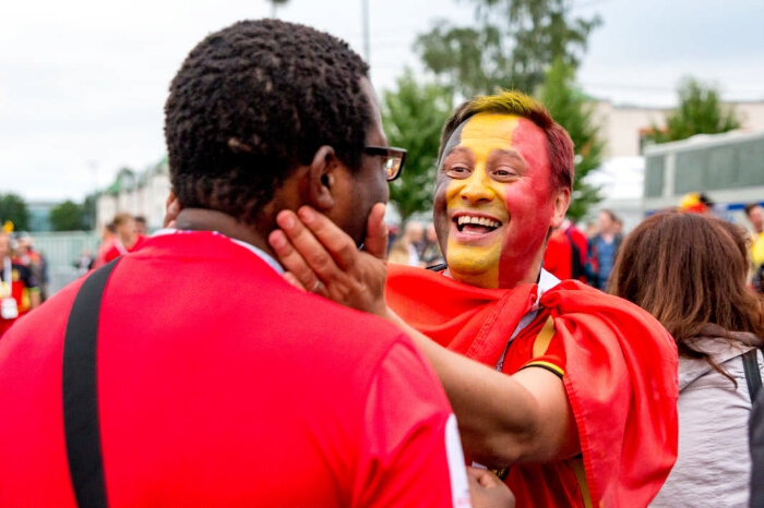 Чемпионат мира по футболу 2018. Болельщики сборной Бельгии (Санкт-Петербург). [4] : [фотография] / фото А. А. Кассировой. - Электронные графические данные (1 файл, JPEG: 3,7 Мб). -Санкт-Петербург, 10 июля 2018 года. - Режим доступа: интернет-портал Президентской библиотеки. Информация о фотографии предоставлена автором. Место и дата съемки: Санкт-Петербург, Крестовский остров, 10 июля 2018 года. На снимке: болельщики сборной Бельгии в день матча Франция - Бельгия. Копирование пользователями не разрешается.