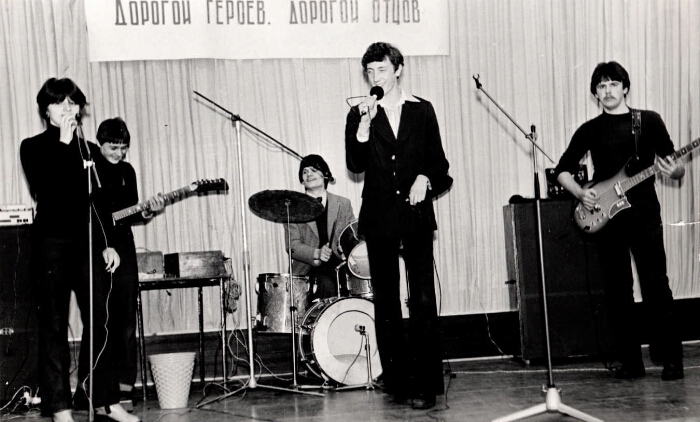 Вечер отдыха в ПТУ-216. Выступает вокально-инструментальный ансамбль училища (дипломант смотра художественной самодеятельности, проводимого в ходе эстафеты "Заветам Ленина верны") (г. Кириши, Ленинградская область) : [фотография]. - [1970-е годы]. - Фотопечать, черно-белая. - Режим доступа: интернет-портал Президентской библиотеки. Заглавие из сопроводительного документа. Информация о фотографии предоставлена Администрацией МО Киришский муниципальный район Ленинградской области. На снимке в нижнем ряду слева направо: - Г. В. Минина, А. П. Семенова, А. А. Лукин, Т. П. Баскакова. Электронная репродукция (1 файл, JPEG : 6,7 МБ). Копирование пользователями не разрешается.