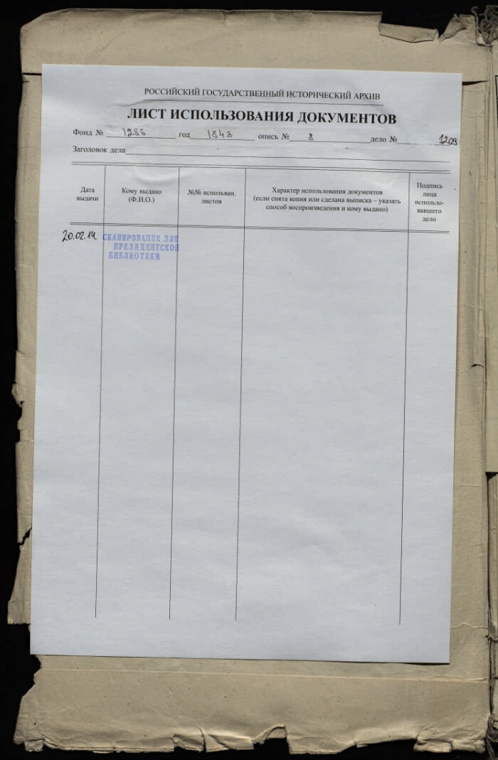 | Шифр хранения | РГИА. 1286 / 8 / 1209 |