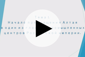 Старинная металлургия Западной Сибири. Лекция 1. Начало превращения Алтая в один из главных промышленных центров Российской империи : видеолекция / лектор: доктор исторических наук В. В. Ведерников ; над видеолекцией работали: В. Ведерников, Н. Попова, А. Есаулов. - Электронные данные (1 видеофайл). -[Барнаул] : АКУНБ, 2017. - (Постигаем Алтай : культурно-просветительский проект). - Систем. требования: ПК 1 ГГц или выше ; ОЗУ 512 МБ или выше ; ОС Windows ; Windows Media Player ; видеоадаптер ; звуковая карта. Режим доступа: интернет-портал Президентской библиотеки. Заглавие с экрана. На титульных кадрах: Алтайский институт экономики, ЧОУ ВО "Санкт-Петербургский университет технологий управления и экономики", Краевое государственное бюджетное учреждение "Алтайская краевая универсальная научная библиотека им. В. Я. Шишкова" представляют культурно-просветительский проект "Постигая Алтай". Курс лекций "Старинная металлургия Западной Сибири", лектор: доктор исторических наук В. В. Ведерников. Тема 1. Начало превращения Алтая в один из главных промышленных центров Российской империи. Видеолекция представлена в рамках культурно-просветительского проекта "Постигая Алтай". Продолжительность: 39 мин 13 с. Цв., зв. Мультимедийное электронное издание. Копирование пользователями не разрешается.