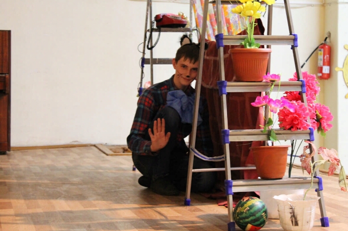 Детско-юношеский театр-студия "Respect" (г. Карабаш, Челябинская область). Актеры после показа спектакля "День рождения кота Леопольда" по пьесе А. Хаита : [фотография] / фото А. А. Емлина. - Электронные графические данные (1 файл, JPEG : 0,3 Мб). -Миасс, 15 апреля 2013. - Режим доступа: интернет-портал Президентской библиотеки. Заглавие из сопроводительного документа. Информация о фотографии предоставлена ЦБС Карабашского городского округа (Челябинская область). Копирование пользователями не разрешается.