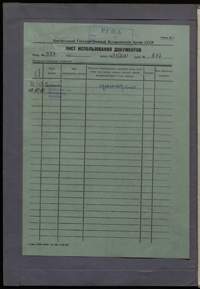 | Шифр хранения | РГИА. 497 / 1 / 887 |