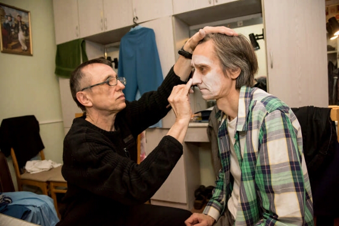 Режиссер спектакля "Мечта Маленького Ослика" Челябинского театра кукол Михаил Яремчук гримирует артиста Николая Архипова для роли Папы Ослика : [фотография] / фото М. М. Муллыева. - Электронные графические данные (1 файл, JPEG : 0,3 Мб). -Челябинск, [2018?]. - Режим доступа: интернет-портал Президентской библиотеки. Заглавие из сопроводительного документа. Информация о фотографии предоставлена Челябинским государственным театром кукол имени В. Вольховского. Копирование пользователями не разрешается.