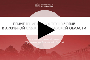 Применение новых технологий в архивной службе Ярославской области : [видеозапись выступления на] Первом Международном Петербургском историческом форуме, 1.11.2019, Президентская библиотека / Евгений Леонидович Гузанов (Правительство Ярославской области). - Санкт-Петербург : Президентская библиотека, 2019. -Электронные данные (1 видеофайл). - Заглавие с экрана. Продолжительность: 22 мин 49 с. Зв., цв. Выступление Е. Л. Гузанова на круглом столе "Информационные технологии в архивном деле: взгляды программистов, архивистов, исследователей", который продолжил заложенную на архивных конференциях СПбГУ традицию обсуждения актуальных проблем по внедрению и использованию новейших информационных технологий в архивной сфере. Особенности создания, использования и популяризации электронных документов, риски, возникающие при переходе на цифровой документооборот – эти вопросы были рассмотрены как с позиции программистов, так и с учётом интересов пользователей архивной информации