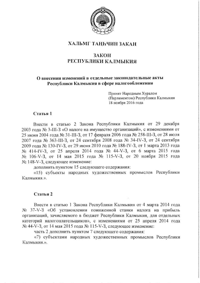 О внесении изменений в отдельные законодательные акты Республики Калмыкия в сфере налогообложения : Закон Республики Калмыкия от 18.11.2016 № 204-V-З. - Электронные текстовые данные (2 файла). -(Москва: ГлавНИВЦ УДП РФ , 2018). - Режим доступа: интернет-портал Президентской библиотеки. Загл. с титульной страницы. Электронная версия:Закон Республики Калмыкия от 18.11.2016 № 204-V-З "О внесении изменений в отдельные законодательные акты Республики Калмыкия в сфере налогообложения".