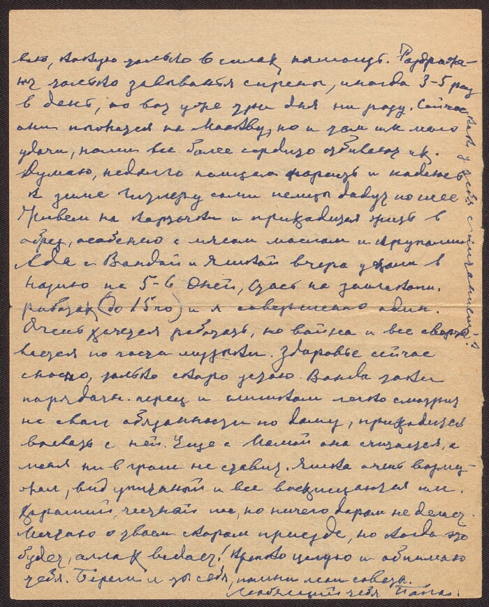 Письмо Адели Михайловны Гарпф и Иосифа Лукича Гарпф из Ленинграда сыну Михаилу Иосифовичу Гарпф. 6 августа 1941 г. / Гарпф Адель Михайловна (1887—1970-е)