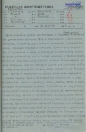 | Заголовок | Шифртелеграмма 1-го секретаря полпредства СССР в Польше Н. И. Чебышева в НКИД СССР о демонстрациях в Варшаве |