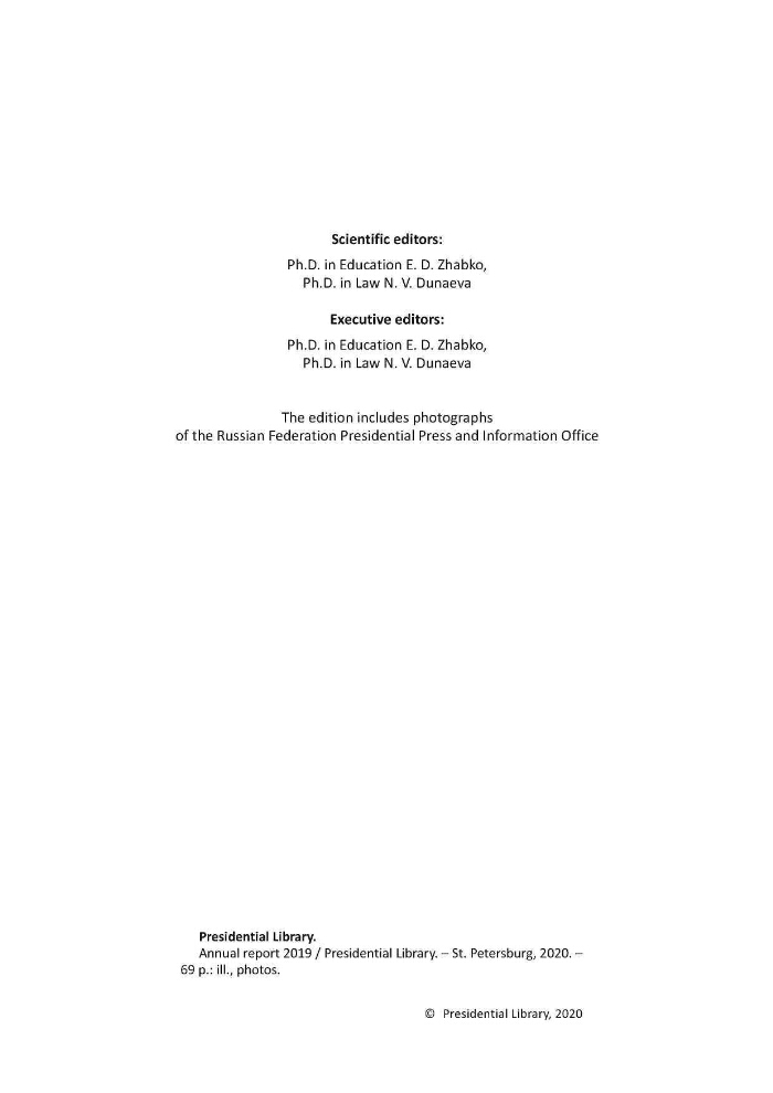 I. Dunaeva, Natalia Viktorovna (юрист).1. Президентская библиотека (Санкт-Петербург, город) -- Отчеты. |