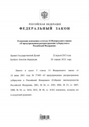 О внесении изменения в статью 14 Федерального закона "О предупреждении распространения туберкулеза в Российской Федерации" : Федеральный закон от 02.05.2015 № 124-ФЗ. - Электронные текстовые данные (2 файла). -(Москва: ГлавНИВЦ УДП РФ , 2018). - Режим доступа: интернет-портал Президентской библиотеки. Загл. с титульной страницы. Электронная версия: Федеральный закон от 02.05.2015 № 124-ФЗ "О внесении изменения в статью 14 Федерального закона "О предупреждении распространения туберкулеза в Российской Федерации".