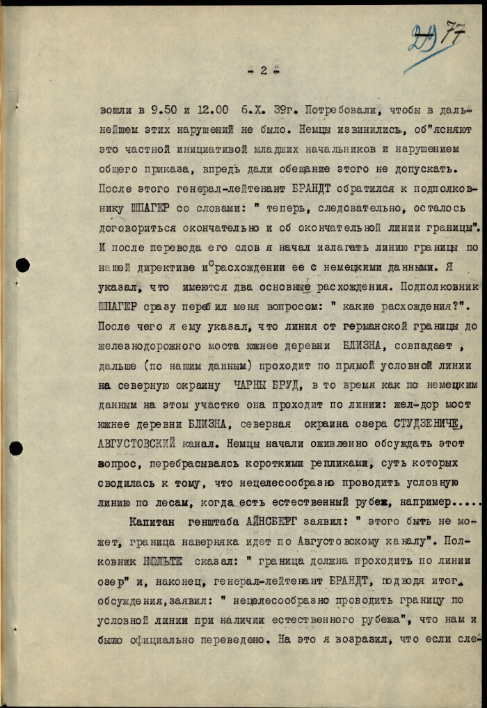 | Заголовок | Сопроводительное письмо начальника штаба Белорусского фронта М. А. Пуркаева начальнику Генштаба РККА Б. М. Шапошникову при рапорте начальника штаба 16-го стрелкового корпуса И. И. Семенова об итогах переговоров с представителями вермахта по вопросу уточнения пунктов временной государственной границы |