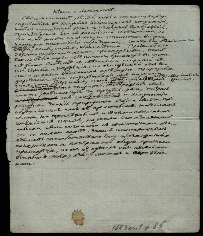 Идентификатор 58a0dd4a-253f-4944-a4a8-aef4663703b7 Заголовок Записка А. С. Шишкова о М. В. Ломоносове Даты 1813 Примечания Рукописный текст. Чернила Язык текста Русский Уровень Дело Шифр хранения РГИА. 1673 / 1 / 85 Организация-создатель записи РГИА Описи 1786-1870 гг. Объем 1 лист Фонд Шишков Александр Семенович (1754-1841), министр народного просвещения, президент Академии наук, писатель Аннотация Документальные материалы, отложившиеся в результате научной деятельности Александра Семеновича Шишкова Формат отображения Архивное описание RUSMARC В коллекциях Президентская библиотека – учителям: обучение с использованием первоисточников → Коллекции → Предметы: → История → Общие коллекции → Государственная власть → Персоналии государственных деятелей → Императоры → Петр I (1672–1725) → Пётр I (1672–1725) → Деятельность Петра I → Наука, просвещение и культура → Академия наук и становление российской науки → Персоналии → Академики → М. В. Ломоносов (1711–1765) → М. В. Ломоносов (1711–1765) → Жизнь и деятельность М. В. Ломоносова → Общий раздел