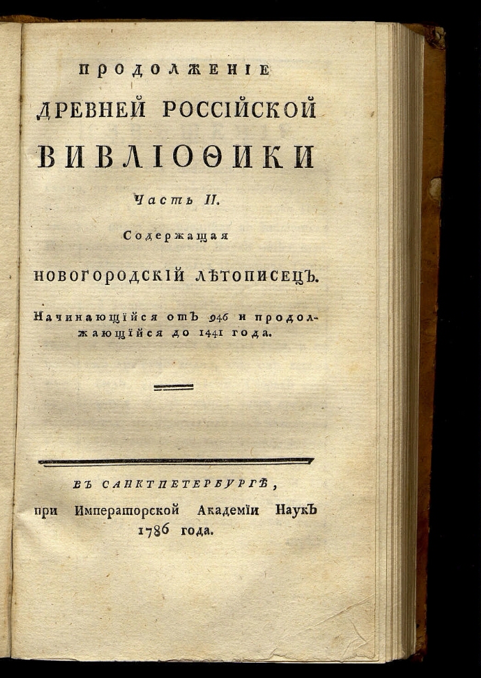 Ч. 2: Содержащая Новгородский летописец. Начинающийся от 946 и продолжающийся до 1441 года. - 1786 года. -[2], IV, С.: 257-712. -