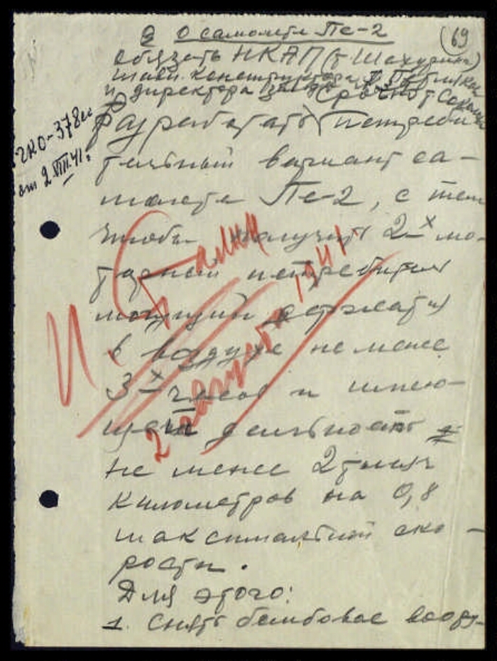 | Заголовок | Постановление ГКО СССР № 378 сс о разработке истребительного варианта самолета Пе-2 |