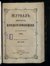 Журнал Министерства народного просвещения. - Санкт-Петербург, 1803-1917. - С Ч. 107 (июль) - 113 (январь) (1860-1862) издание разделилось на 2 части: часть официальную и неофициальную, выходивших в отдельных обложках с параллельной нумерацией частей. С части 113 (февраль) 1862 г. официальная и неофициальная части журнала объединились и выходят в одной обложке. Изменения заглавия: 1803-1819 Периодическое сочинение о успехах народного просвещения ; 1821-1824 Журнал Департамента народного просвещения ; 1825-1829 Записки, издаваемые отделом Департамента народного просвещения ; 1834-1906 Журнал Министерства народного просвещения ; 1906-1917 Журнал Министерства народного просвещения. Новая серия. - В 1830-1833 гг. журнал не издавался. Взамен него вышел сборник "Собрание постановлений по Министерству народного просвещения с 1 января 1829 по 21 марта 1833 года". - Издание прекращено на Ч. 72 1917 г., взамен него выходит журнал "Народное просвещение". - Издание за 1919 см.: Временное сибирское правительство. М-во народного просвещения: журнал ...