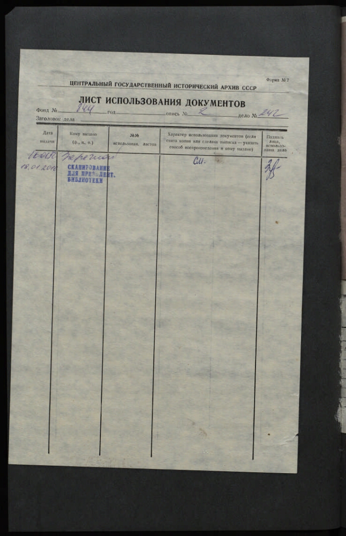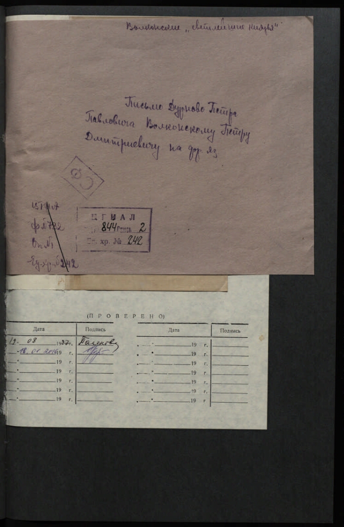 Шифр хранения РГИА. 844 / 2 / 242