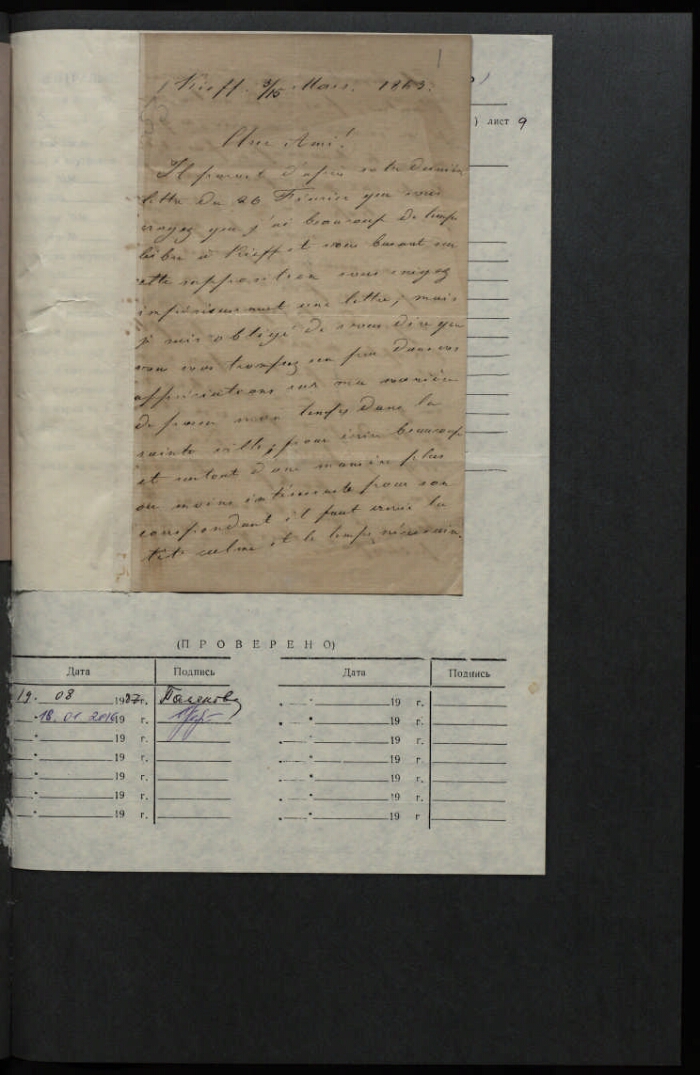 Заголовок дела также: Письмо Дурново петра Павловича Волконскому Петру Дмитриевичу : на французском языке