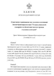 О признании утратившими силу отдельных положений Закона Краснодарского края "О мерах социальной поддержки по обеспечению жильем граждан отдельных категорий" : Закон Краснодарского края от 06.11.2015 № 3264-КЗ. - Электронные текстовые данные (2 файла). -(Москва: ГлавНИВЦ УДП РФ , 2018). - Режим доступа: интернет-портал Президентской библиотеки. Загл. с титульной страницы. Электронная версия:Закон Краснодарского края от 06.11.2015 № 3264-КЗ "О признании утратившими силу отдельных положений Закона Краснодарского края "О мерах социальной поддержки по обеспечению жильем граждан отдельных категорий".