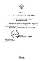 О заместителе Министра внутренних дел Российской Федерации : Указ Президента Российской Федерации от 17.02.2015 № 74. - Электронные текстовые данные (1 файл). -(Москва: ГлавНИВЦ УДП РФ , 2018). - Режим доступа: интернет-портал Президентской библиотеки. Загл. с титульной страницы. Электронная версия:Указ Президента Российской Федерации от 17.02.2015 № 74 "О заместителе Министра внутренних дел Российской Федерации".