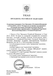 О внесении изменений в Указ Президента Российской Федерации от 8 мая 2014 г. № 311 О мерах по улучшению материального положения некоторых категорий ветеранов Великой Отечественной войны, проживающих в Латвийской Республике, Литовской Республике и Эстонской Республике : Указ Президента Российской Федерации от 28.10.2014 № 692. - Электронные текстовые данные (1 файл). -(Москва: ГлавНИВЦ УДП РФ , 2018). - Режим доступа: интернет-портал Президентской библиотеки. Загл. с титульной страницы. Электронная версия:Указ Президента Российской Федерации от 28.10.2014 № 692 "О внесении изменений в Указ Президента Российской Федерации от 8 мая 2014 г. № 311 О мерах по улучшению материального положения некоторых категорий ветеранов Великой Отечественной войны, проживающих в Латвийской Республике, Литовской Республике и Эстонской Республике".