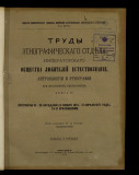 Труды Этнографического отдела. - [Кн. 1] [1868] - т. 18 (1913). -Москва, [1868]-1900, 1906-1907, 1911, 1913. - (Известия Императорского общества любителей естествознания, антропологии и этнографии, состоящего при Императорском Московском университете ; ...). - Заглавие: [Кн. 1] (1868) заглавие отсутствует ; кн. 2 (1873), 3 (1874), 6 (1881), 10 (1890) - 17 (1907) Труды Этнографического отдела ; кн. 4 (1877), 5 (1877), 7 (1886) - 9 (1889) Труды Этнографического отдела Императорского общества любителей естествознания, антропологии и этнографии (кн. 4-5, 7-8 ... при Московском университете). Т 17, вып. 2 и 3 не выходили. Редакционный комитет: Н. А. Янчук, А. Т. Гречанинов, А. Л. Маслов, Е. Э. Линев, Ю. Д. Энгель. Печатались в составе "Известий Императорского общества любителей естествознания, антропологии и этнографии, состоящего при Императорском Московском университете". - В составе т. 13 "Трудов" вышел "Дневник Зоологического отделения Императорского общества любителей естествознания, антропологии и этнографии", в составе т. 15-18 вышли "Труды Музыкально-этнографической комиссии", т. 1-4. - Ивановский А. А. Издания Общества с 15 октября 1863 года по 1 августа 1894 года : библиогр. указ. Москва, 1894. (Известия Императорского общества любителей естествознания, антропологии и этнографии, состоящего при Императорском Московском университете ; т. 89). - Богданов В. В. Издания Общества с 1-го августа 1894 г. по 15-е марта 1913 г. : библиогр. указ. Вып. 2. Москва, 1913. Стб. 7-18. - Известия Императорского общества любителей естествознания, антропологии и этнографии : [содерж. т. 1-57, 1866-1889] // Циркуляр по Казанскому учебному округу. 1889. № 6. С. 264-316.