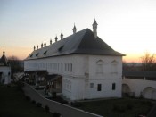 Саввино-Сторожевский монастырь (Московская область, г. Звенигород). Дворец царя Алексея Михайловича : [фотография] / фот. Л. В. Завьялова. - Звенигород, 11 ноября 2008. -1 файл (1,9 Мб, JPEG) : цв.. - Режим доступа: интернет-портал Президентской библиотеки. Заглавие из сопроводительного документа. Информация о фотографии предоставлена автором. Саввино-Сторожевский монастырь - православный ставропигиальный мужской монастырь в городе Звенигород Московской области. Основан в конце XIV века, расположен на горе Сторожи у места впадения речки Сторожки в Москву-реку. При царе Алексее Михайловиче монастырь стал загородной царской резиденцией. На территории монастыря расположены Рождество-Богородицкий собор; Надвратный храм Живоначальной Троицы; Церковь преподобного Сергия Радонежского в колокольне; Храм святого Алексия, человека Божия; Трапезная церковь, храм во имя Преображения Господня; Трапезная; Царицыны палаты; Дворец царя Алексея Михайловича; Братские корпуса; Звонница и другие сооружения. Дворец царя Алексея Михайловича строился в три этапа: в 1652-1654 гг. была сооружена северная часть дворца, в 1674-1676 гг. дворец представлял собой одноэтажное строение на подклете из семи клетей с отдельными входами. Парадную центральную часть занимали покои царя, в северной части находились кухонные помещения, остальные клети предназначались для царской семьи и свиты. У четырех клетей был деревянный второй этаж, куда вели узкие внутристенные лестницы. В 1686-1687 гг. при царевне Софье крышу и тесовые терема разобрали и надстроили второй этаж с анфиладой комнат по всей длине здания. Вместо внутристенных лестниц были сооружены наружные каменные крыльца на второй этаж. Дворец сильно пострадал при пожаре 1742 г.