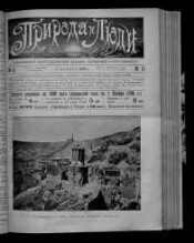 Природа и люди : иллюстрированный журнал науки, искусства и литературы. - Г. 1 1889/1890, № 1 - Г. 29 1918, № 14. -Санкт-Петербург, 1889-1918. - Редакторы: 1889-1905 Ф. С. Груздев ; 1906, № 10-39 - 1918, № 1-4 П. П. Сойкин ; 1918, № 5 Я. И. Перельман. Место издания: 1889-1914, № 42 Санкт-Петербург ; 1914, № 43 - 1918 Петроград. Издательство: 1889-1918, № 4 П. П. Сойкин ; 1918, № 5-14 Хозком Пятой государственной типографии. На обложке 1894/1895 г. указан т. 6 ; на обложке 1896/1897 г. указан т. 8 ; на обложке 1897/1898 г. указан т. 9 ; на обложке 1898/1899 г. указан т. 10. Подзаголовки: 1889/1890, № 1-52 не указан ; 1891/1892, № 1-52 - 1894/1895, № 1-52 Иллюстрированный популярно-научный журнал для семейного чтения (с незначительными изменениями) ; 1895/1896, № 1-47 Еженедельный иллюстрированный журнал путешествий и естествознания ; 1896, № 48-51 - 1896/1897, № 1-52 Еженедельный иллюстрированный журнал с приложением 12 книг "Полезной библиотеки" ; 1897/1898, № 1-52 - 1905 не указан ; 1906, № 10-39 Иллюстрированный журнал науки, искусства и литературы. Выходит еженедельно. Оглавление статей, помещенных в журнале "Природа и люди" за прежние годы [1891-1894, 1897, 1899-1901, 1903-1905, 1907]. [Петроград, 1908]. Выходили бесплатные приложения: "Современная жизнь" (1903-1905), "Мир приключений" (1910-1928), "Знание для всех" (1915-1916), а также серии: "Библиотека романов. (Приключения на суше и на море)" (1900-1904), "Библиотека знания (1913-1914)