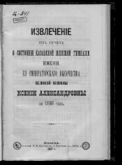 Извлечение из отчета о состоянии Казанской женской гимназии имени Ее Императорского высочества Великой Княжны Ксении Александровны... - Казань : [Б. и.], 1882-1916. - С изд. 1883 г. загл.: "Извлечение из отчета о состоянии Казанской женской гимназии".