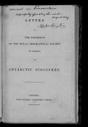 Letter to the president of the Royal geographical society of London, on Antarctic discovery. - London : John Murray, 1837. -15, [1] с., 1 л. карт.. - В вых. дан.: MDCCCXXXVII. Экз.: без обл., с рукоп. помет.