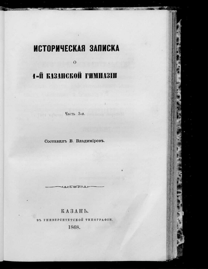 Историческая записка о 1-й Казанской гимназии : Ч. 1-3 / составил В. Владимиров. - Казань : в Университетской типографии, 1867-1868. -3 т. ; 23 см. - .