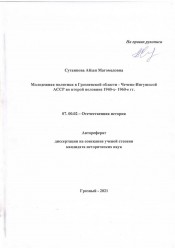 Молодежная политика в Грозненской области - Чечено-Ингушской АССР во второй половине 1940-х - 1960-е годы : автореферат дис. на соиск. уч. степ. кандидата исторических наук : специальность 07.00.02 / Сугаипова Айзан Магомедовна ; [Место защиты: Чеченский государственный университет имени Ахмата Абдулхамидовича Кадырова]. - Грозный, 2021. -26 с. : ил. ; 21 см.. - Библиогр.: с.25-26 (10 назв.). 2021.09.18.02.