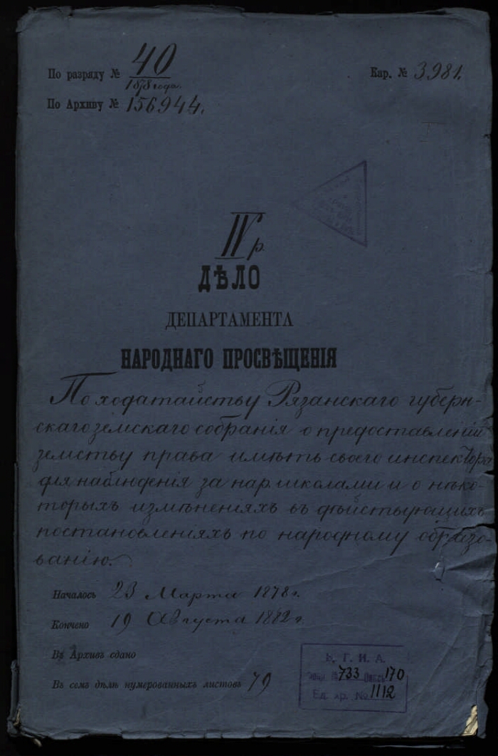 | Фонд | Департамент народного просвещения Министерства народного просвещения |