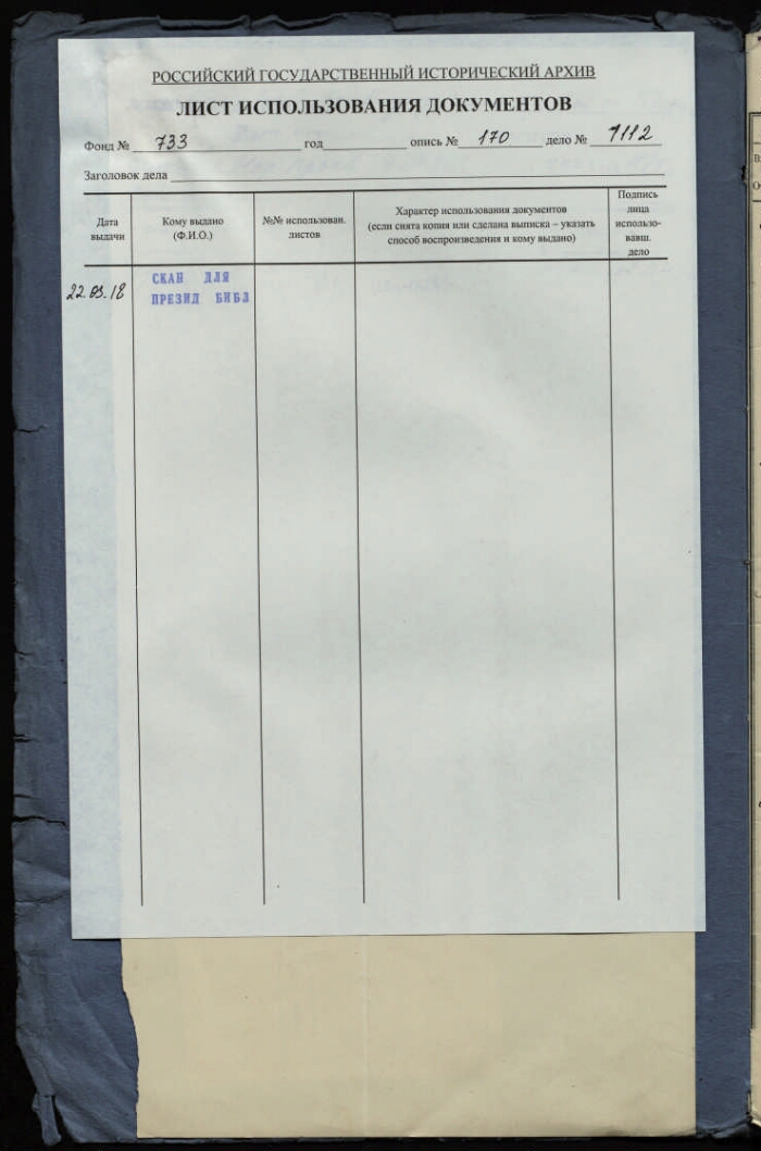 | Шифр хранения | РГИА. 733 / 170 / 1112 |