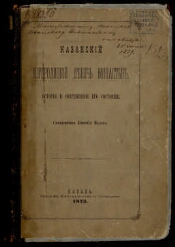 Казанский Богородицкий девичь монастырь : История и современное его состояние / [Соч.] Свящ. Евфимия Малова. - Казань : Тип. имп. ун-та, 1879. -141, XIX, [1] с., 2 л. ил. : табл.. - Библиогр. в подстроч. примеч.. - Экз.: с дарств. надписью Николаю Ивановичу Ильминскому.