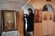 Свято-Никольского храм (Красноярский край, д. Анциферово). Настоятель иерей Михаил (Гончаров) за ремонтными работами / Чиженок, Александр Евгеньевич. - 2013. - Antsiferovo-11 Дата съемки: 29 августа 2013 Место съемки: Анциферово 605: Территория 605: Красноярский край 605: Народ инф.: http://www.sobor24.ru/places/1732/.