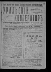 Г. 9. 1919. № 21. 28 (15) мая : Еженед., обществ.-экон. и лит. журн., посвящ. вопросам кооперации. - Изд. Уральского союза потреб. о-в, 1919. -16 с. : табл.. - Содерж.: 1) К постановке вопроса о кооперативном строительстве. 2) Свобода торговли и кооперация: (Оконч.) / Мирской. 3) Омут: Драм. этюд / Ив. Горюновский. 4) О земледельческих артелях при кооперативах: (Оконч.) / Л. Зверев. 5) Из жизни Уралсоюза, [и др.]. - Экз.: без обл.