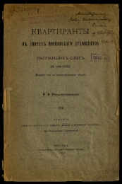 Квартиранты в дворах Московского духовенства и патриарших слуг в 1666 году : (Перепись их в военно-служилых целях) / [Соч.] Н.В. Рождественского. - Москва : Изд. Имп. О-ва истории и древностей рос. при Моск. Ун-те, 1905. -16 с.. - Экз.: с дарств. надписью Павлу Константиновичу Симони.