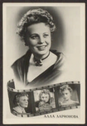 Описание Алла Ларионова. Кадры из фильмов "Судьба барабанщика", "Анна на шее", "Главный проспект": открытка. - -. -Открытка 605: Народ. . Источник электронной копии: Галерея Третьякова